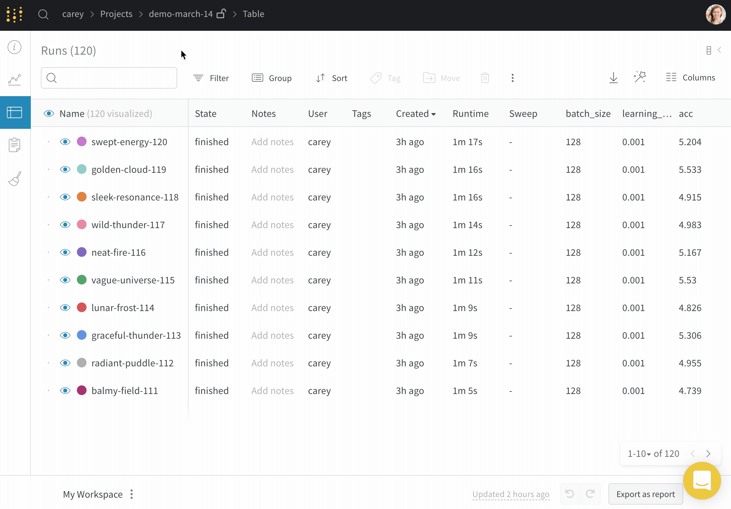 run をあるプロジェクトから別のプロジェクトに移動するには:- 移動したい run を含むプロジェクトに移動します。